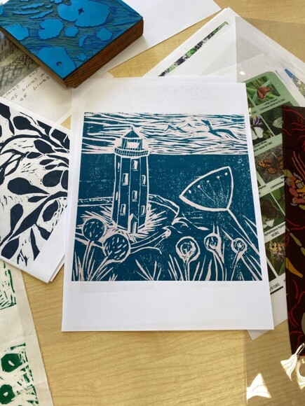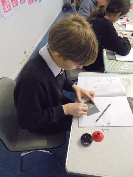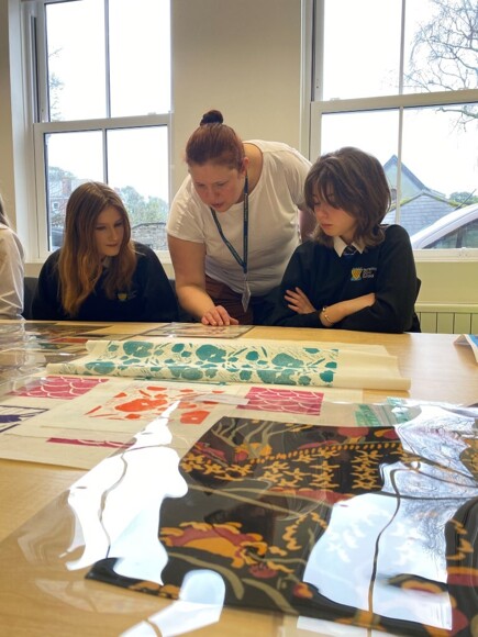 In preparation for their KS4 learning journeys, students learnt all about the founders of the company, Alec and Kay Walker. They also worked in the style of the artist by sketching out their own design ideas before cutting them out of lino and hand printing them onto fabric.