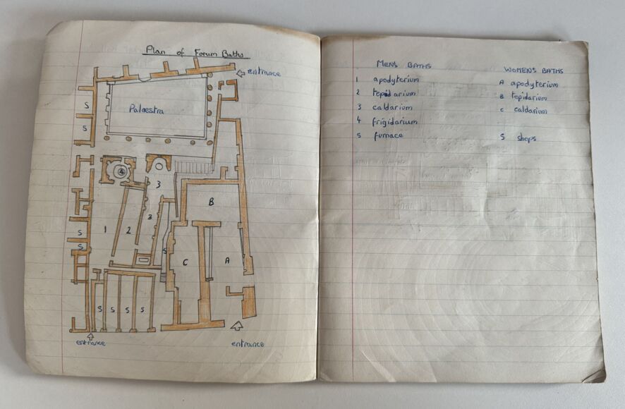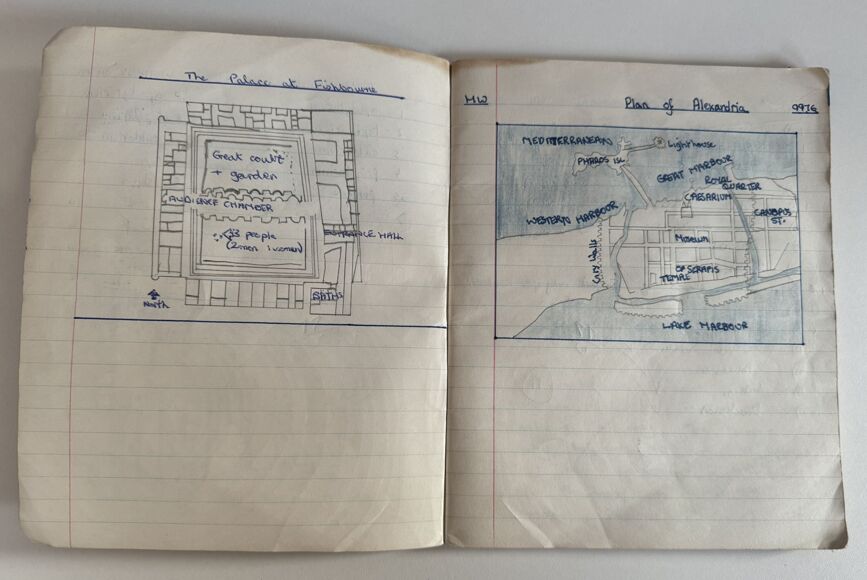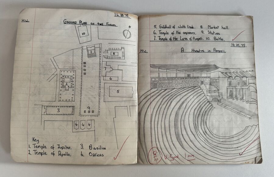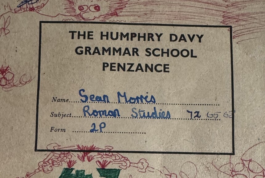 The book was found by our current history teacher, Mr Morgan, who was organising his classroom over half term. Among faded paper and outdated textbooks, he found the exercise book - its beige cover worn but still intact, with "Sean Morris, Roman Studies, 2P" written on the front in blue ink.