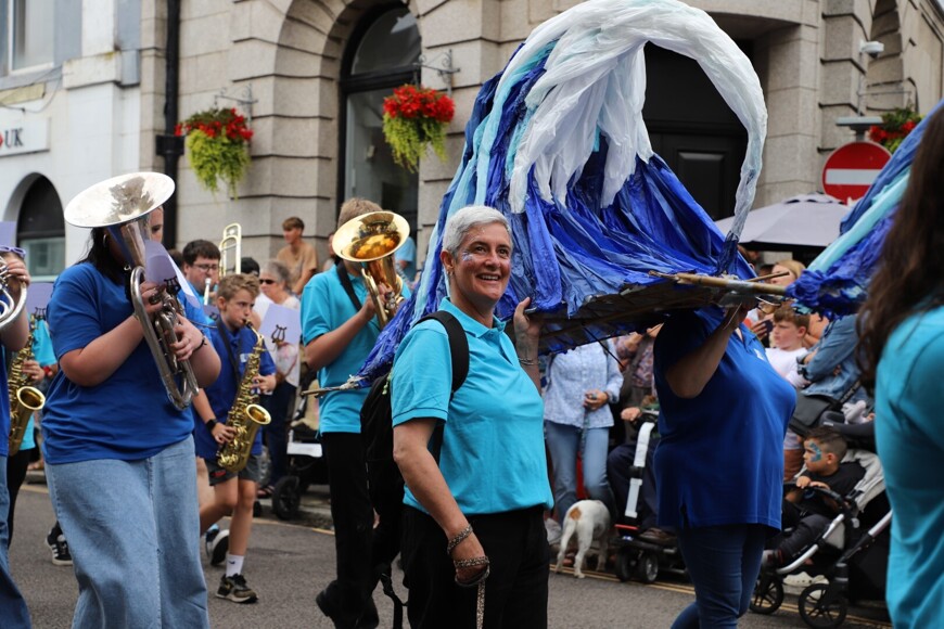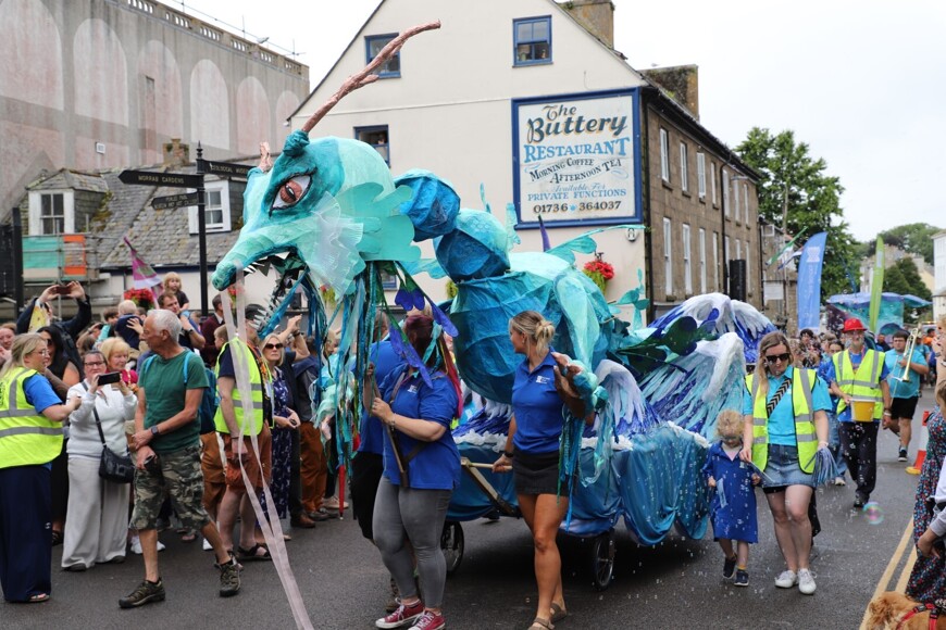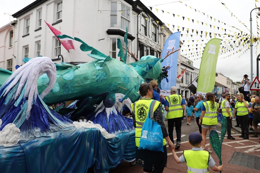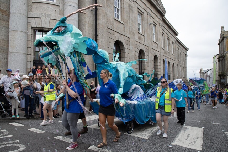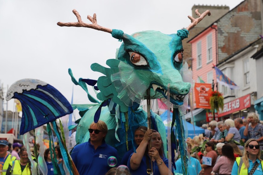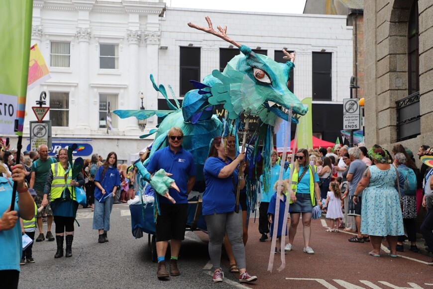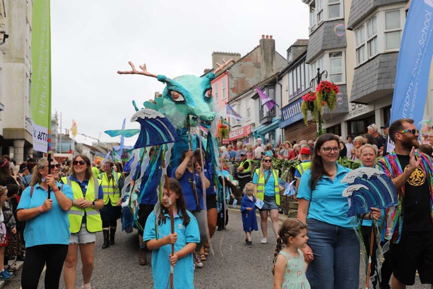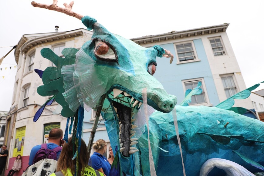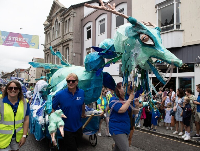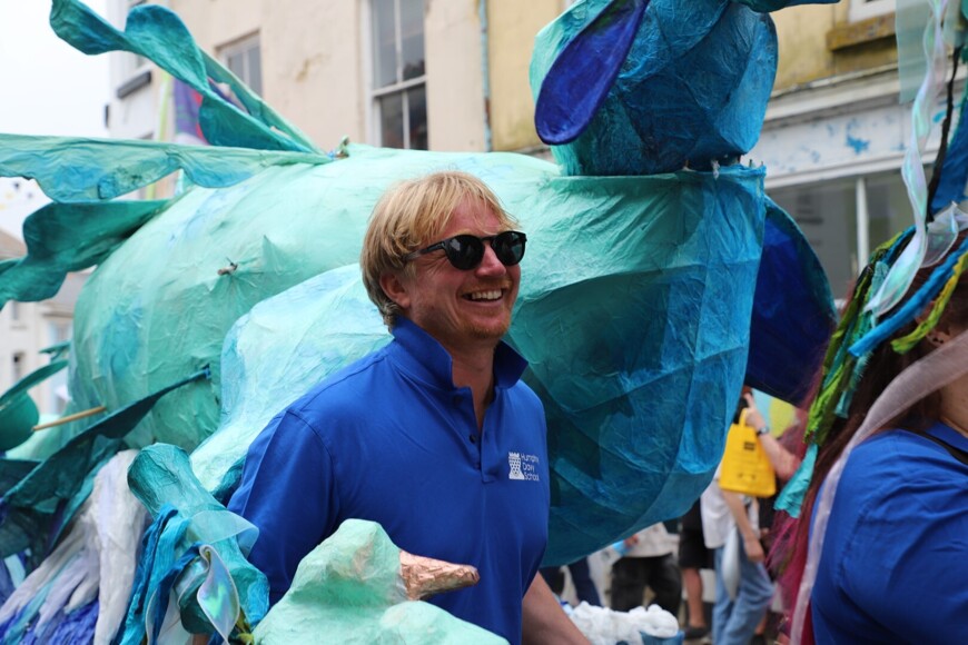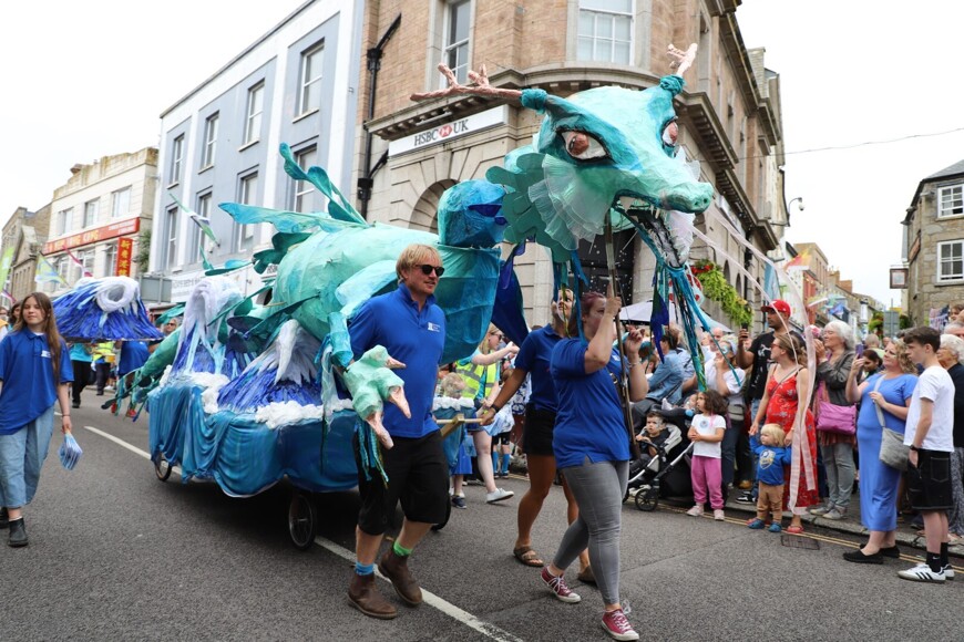 Our stunning contribution to the Golowan Festival parade was a spectacular Sea Dragon, lovingly created by students and staff. Towering above the crowds and shimmering in the summer sun, our dragon was a real show-stopper and one of the largest pieces in the procession – it certainly turned heads as it made its way through the town.