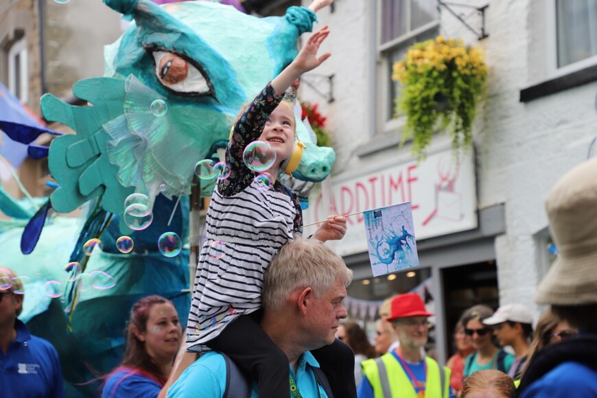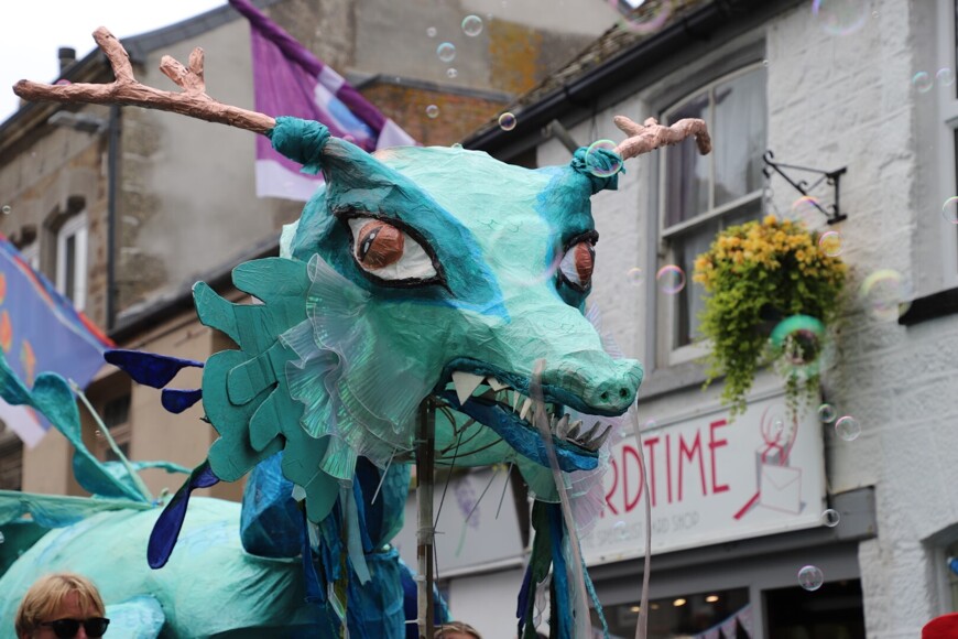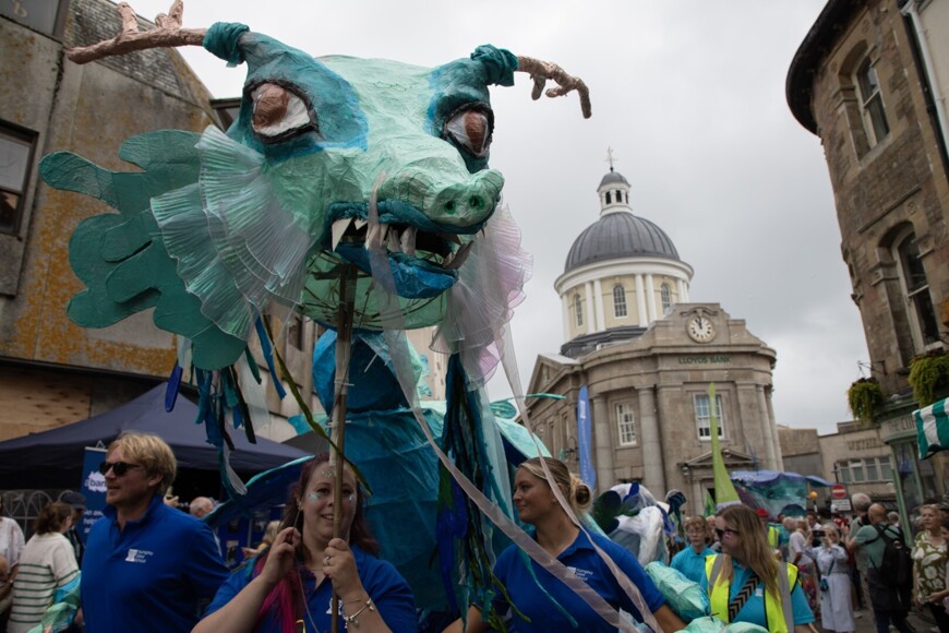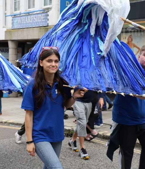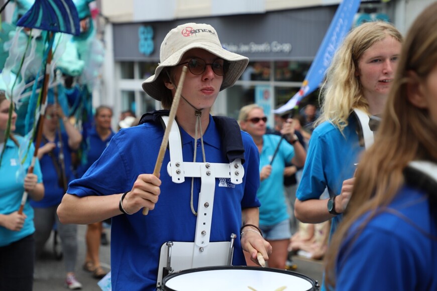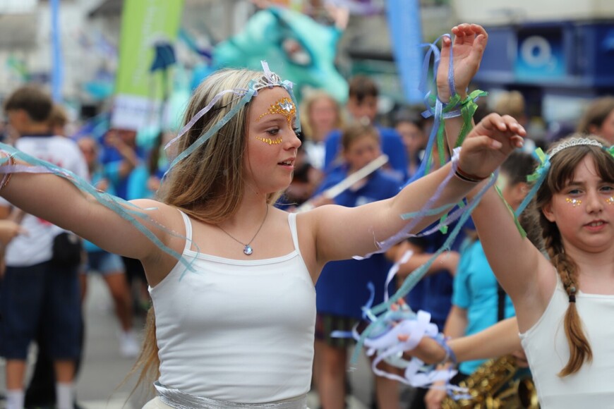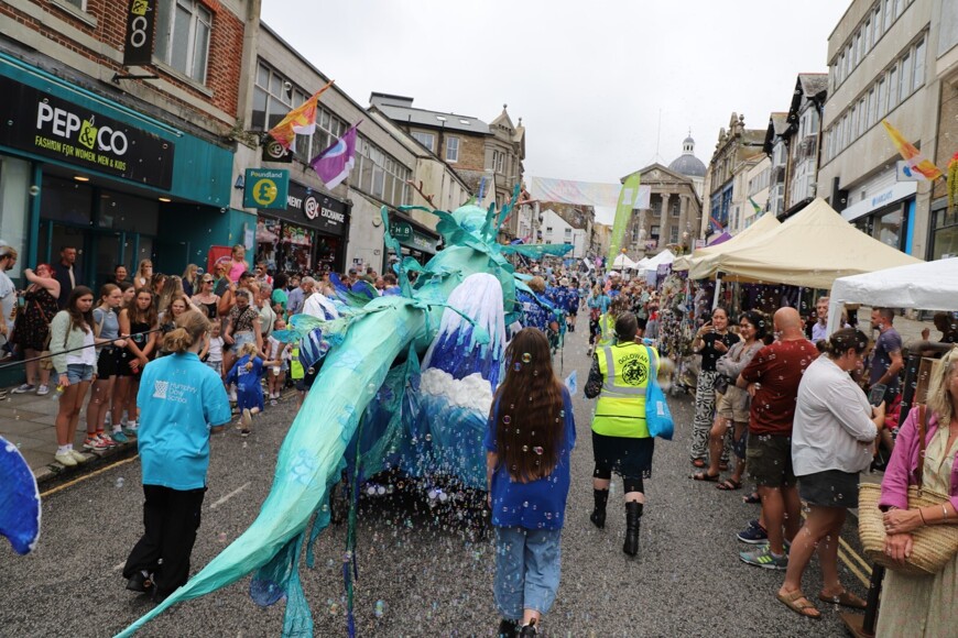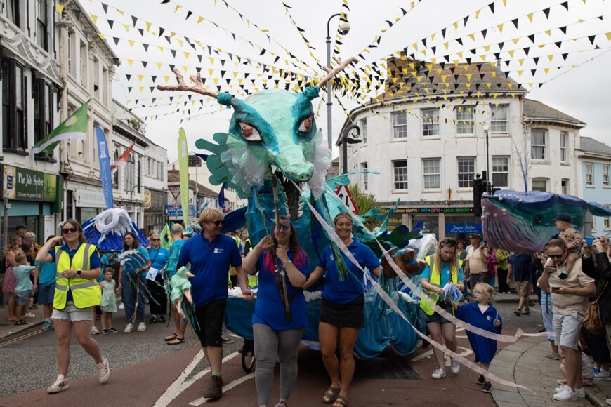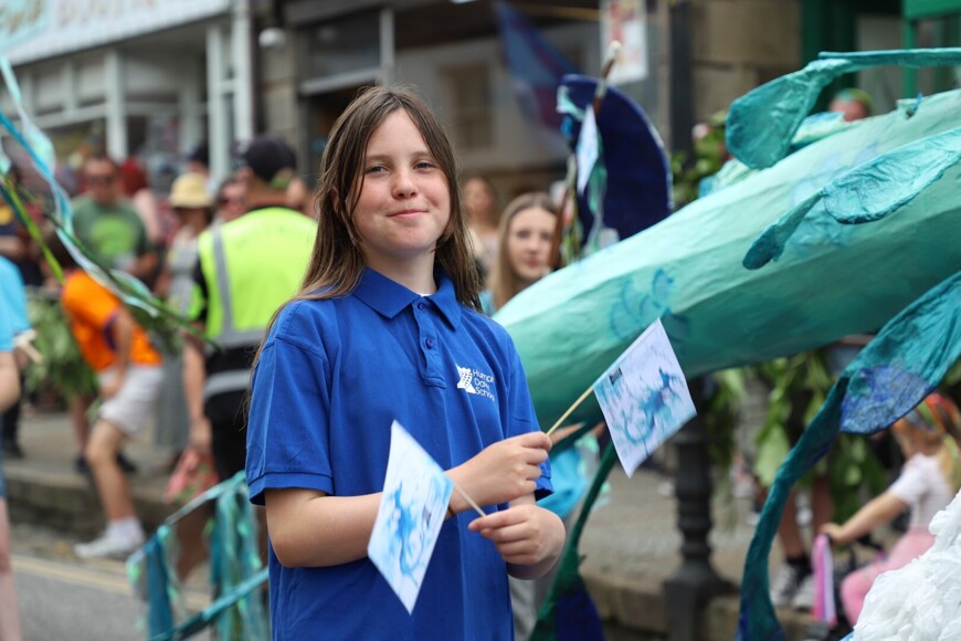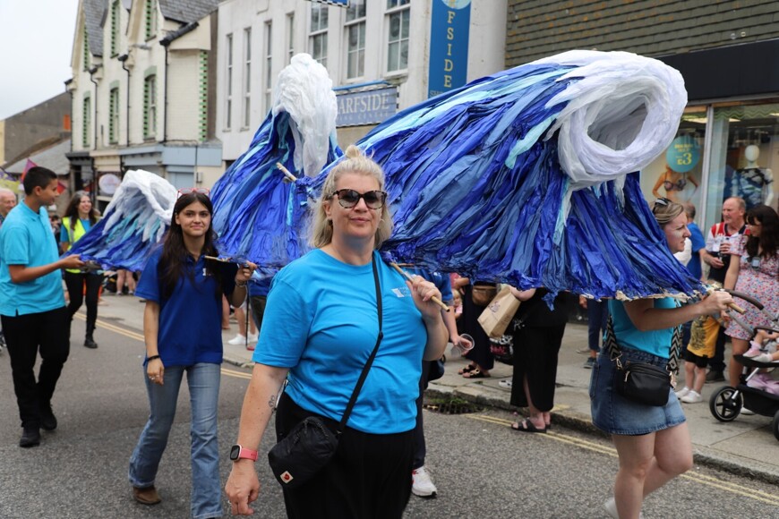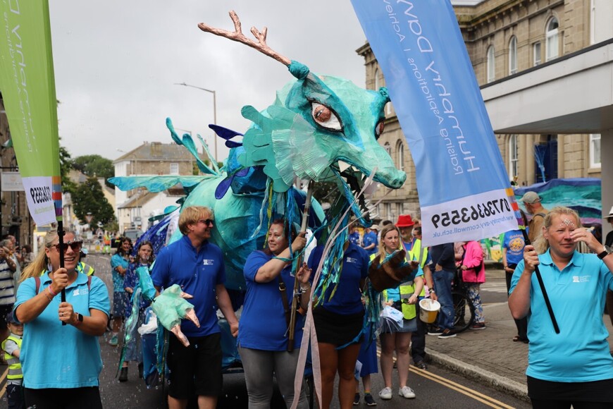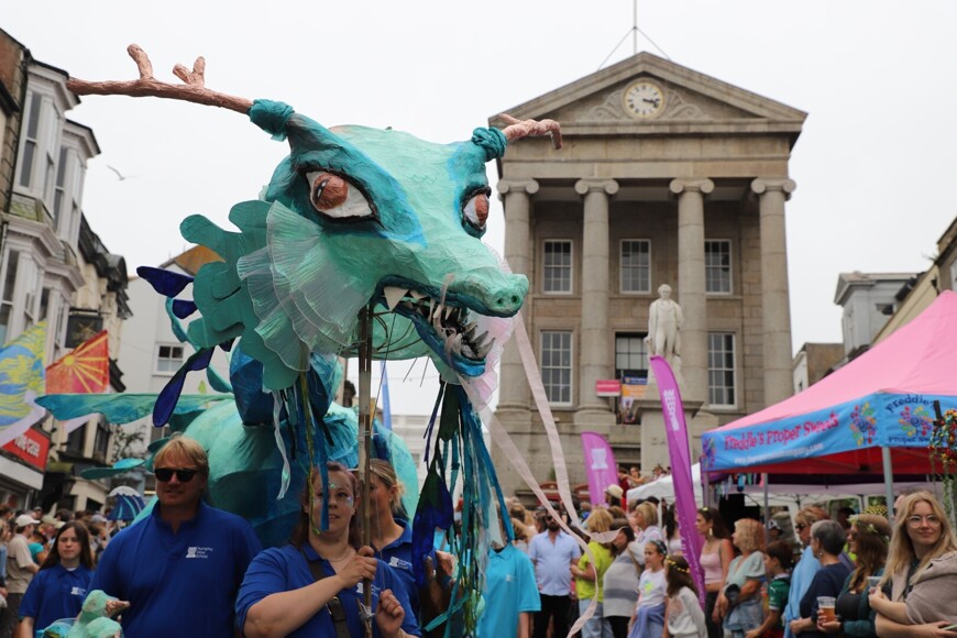 Our stunning contribution to the Golowan Festival parade was a spectacular Sea Dragon, lovingly created by students and staff. Towering above the crowds and shimmering in the summer sun, our dragon was a real show-stopper and one of the largest pieces in the procession – it certainly turned heads as it made its way through the town.