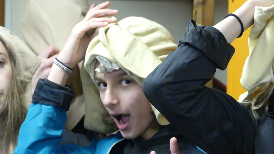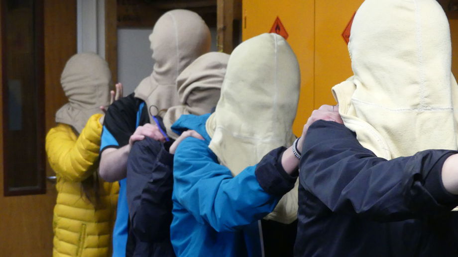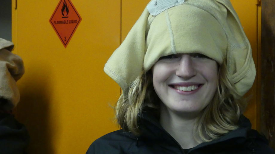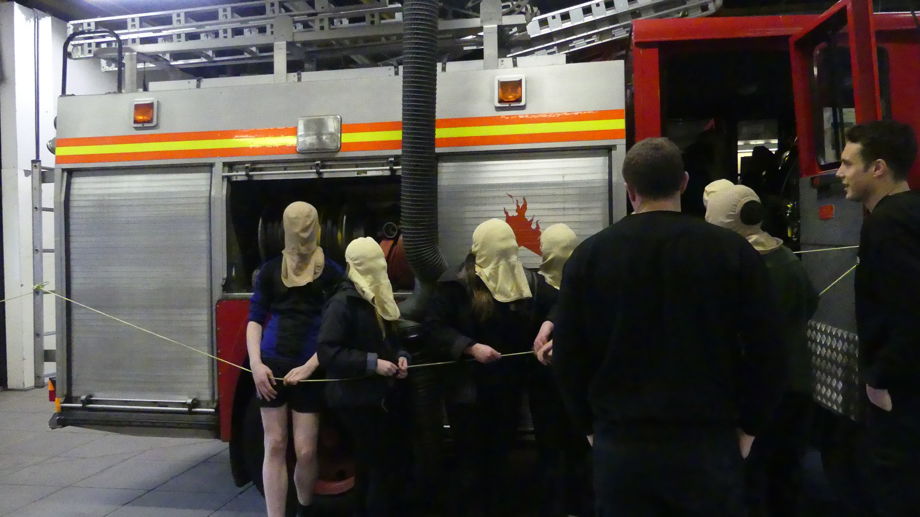 The final challenge of the day was probably the most difficult of all the tasks. Each student placed a hood over their head, blindfolding them; they then had to work as a team totally relying on each other to navigate their way safely around the station. There were many obstacles in their path which the students had to overcome, including clambering through a fire engine! Good communication was essential in this task to avoid getting lost!