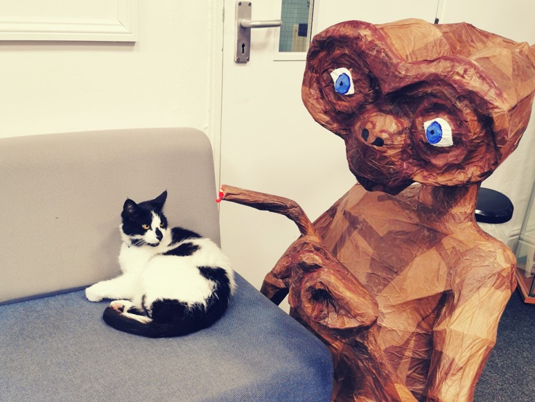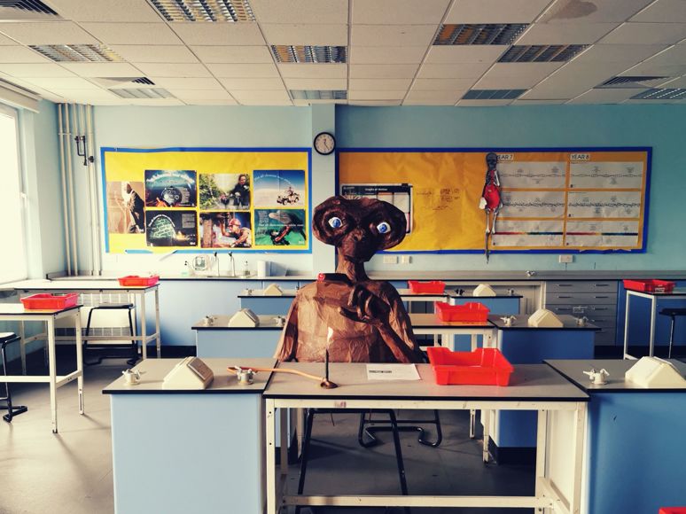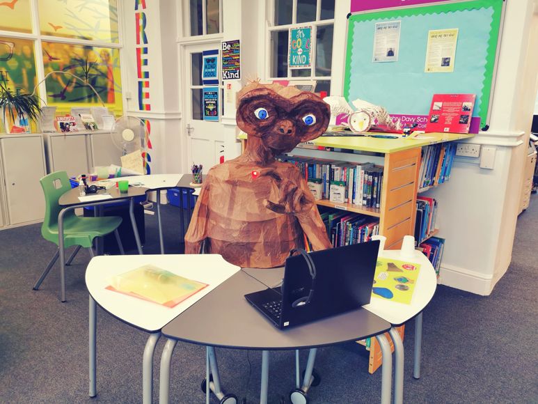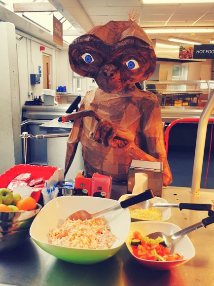 Our 'Mazey Day friend', ET, hasn't 'phoned home' just yet and has extended his stay with us at the school for another week. He's been exploring the school site and, whilst he brought a smile to the faces of everyone he met around the site, we're not sure that our school cat was all that pleased to see him! #ETstrikesagain
